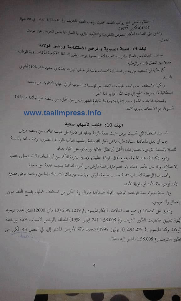 هذه بنود العقد الذي سيوقعه الأساتذة المتعاقدين مع الأكاديميات نموذج