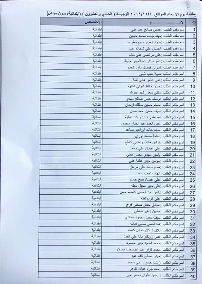 عاجل اسماء المدعوين للمقابلة الوجبة 21 على تعيينات وزارة الاعمار والاسكان والبلديات والاشغال العامة 2019 موقع تعيينات العراق